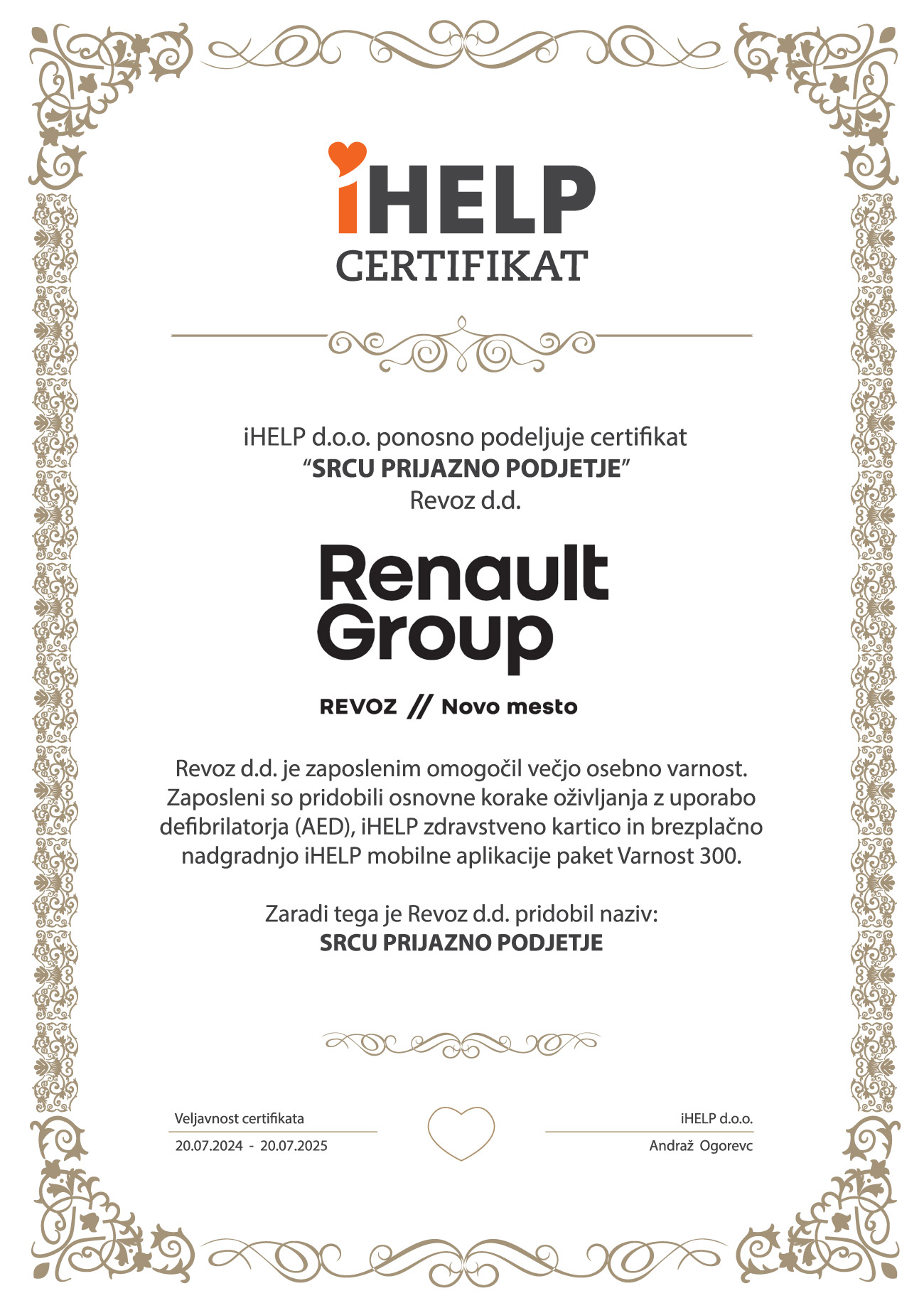 Varnost do zaposlenih dajamo na prvo mesto, zato smo se odločili, da se pridružimo projektu iHELP in postanemo Srcu prijazno podjetje.